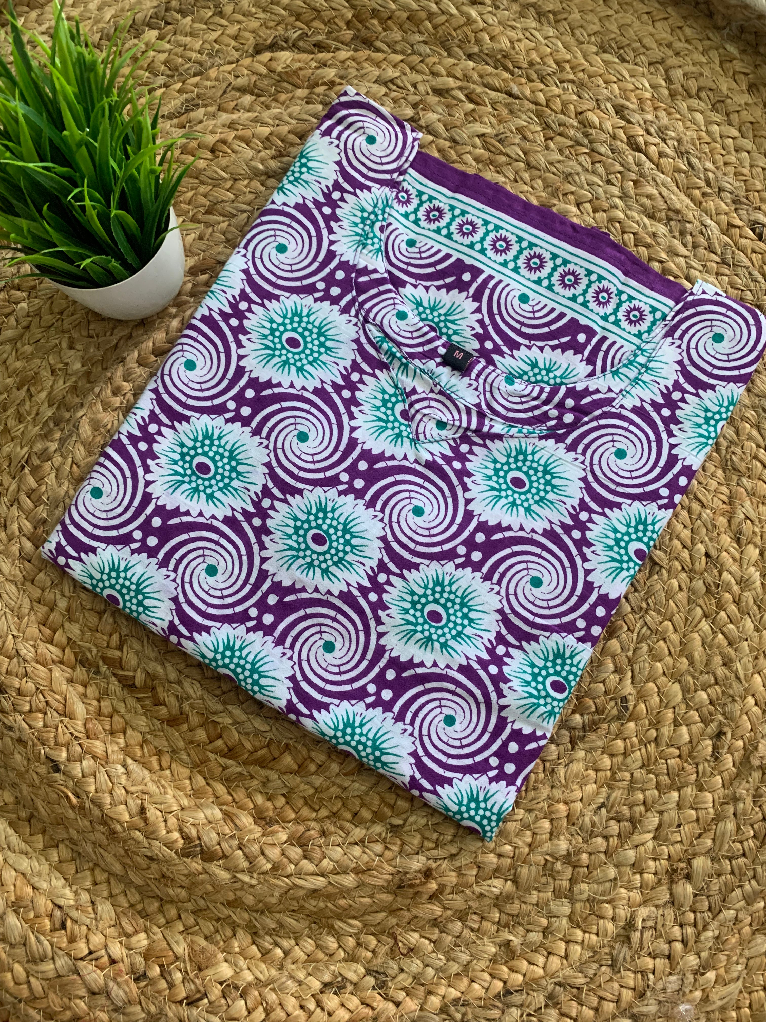 Size : M Pattern : Straight cut kurti Fabric : Jaipur Cotton Height : 42 Inch Sleeve : 3/4 hand PS:please choose the kurti as per size chart given below...