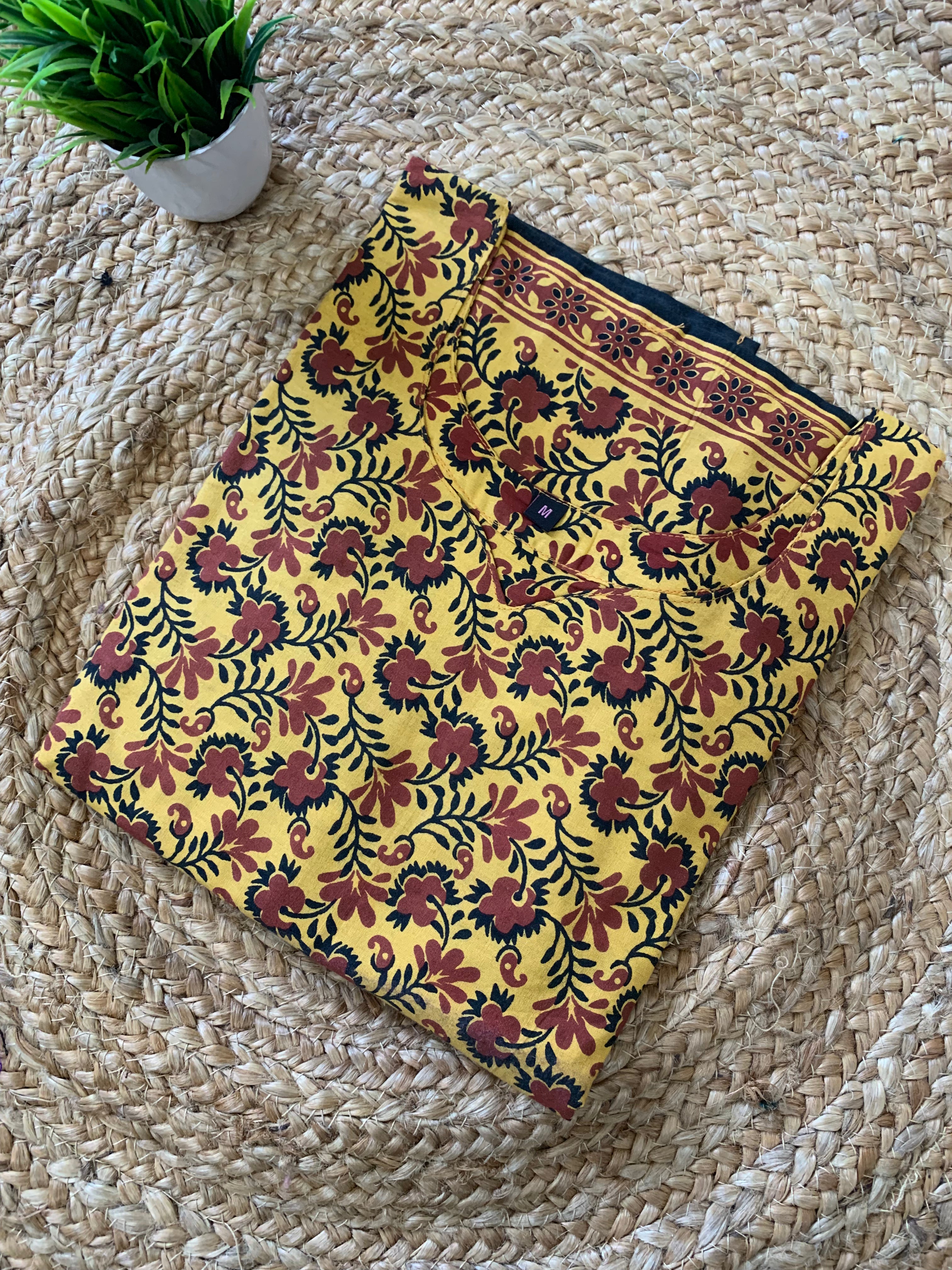 Size : M Pattern : Straight cut kurti Fabric : Jaipur Cotton Height : 42 Inch Sleeve : 3/4 hand PS:please choose the kurti as per size chart given below...